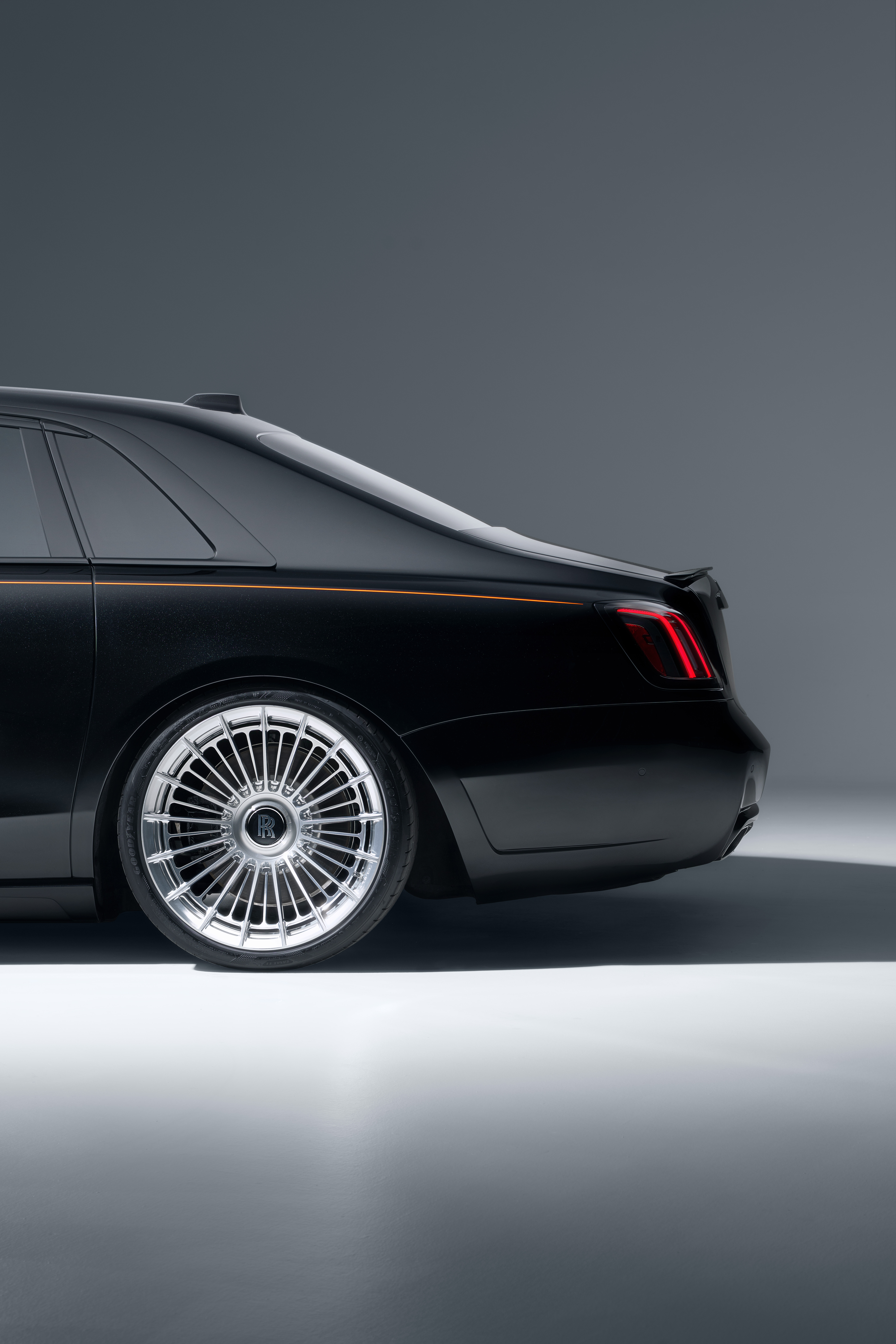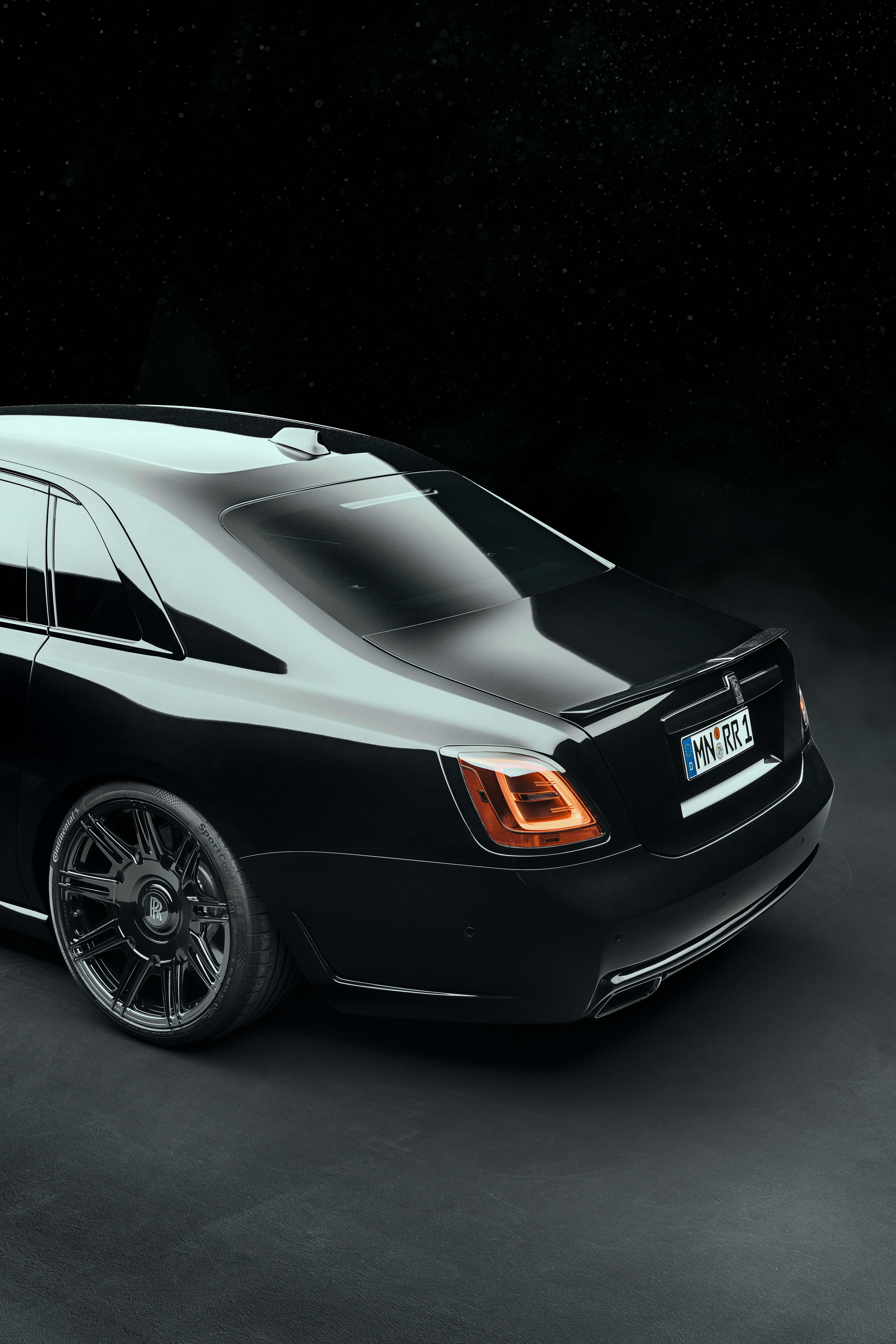 Deutsch: SPOFEC macht den Rolls-Royce Black Badge Ghost Series II noch aufregender und dynamischer Sportlich-elegantes Karosseriedesign und filigrane Vielspeichenräder mit 22 Zoll Durchmesser 519 kW / 706 PS und 1 002 Nm Drehmoment für den V12 Sportauspuffanlage mit elektronischem Soundmanagement |