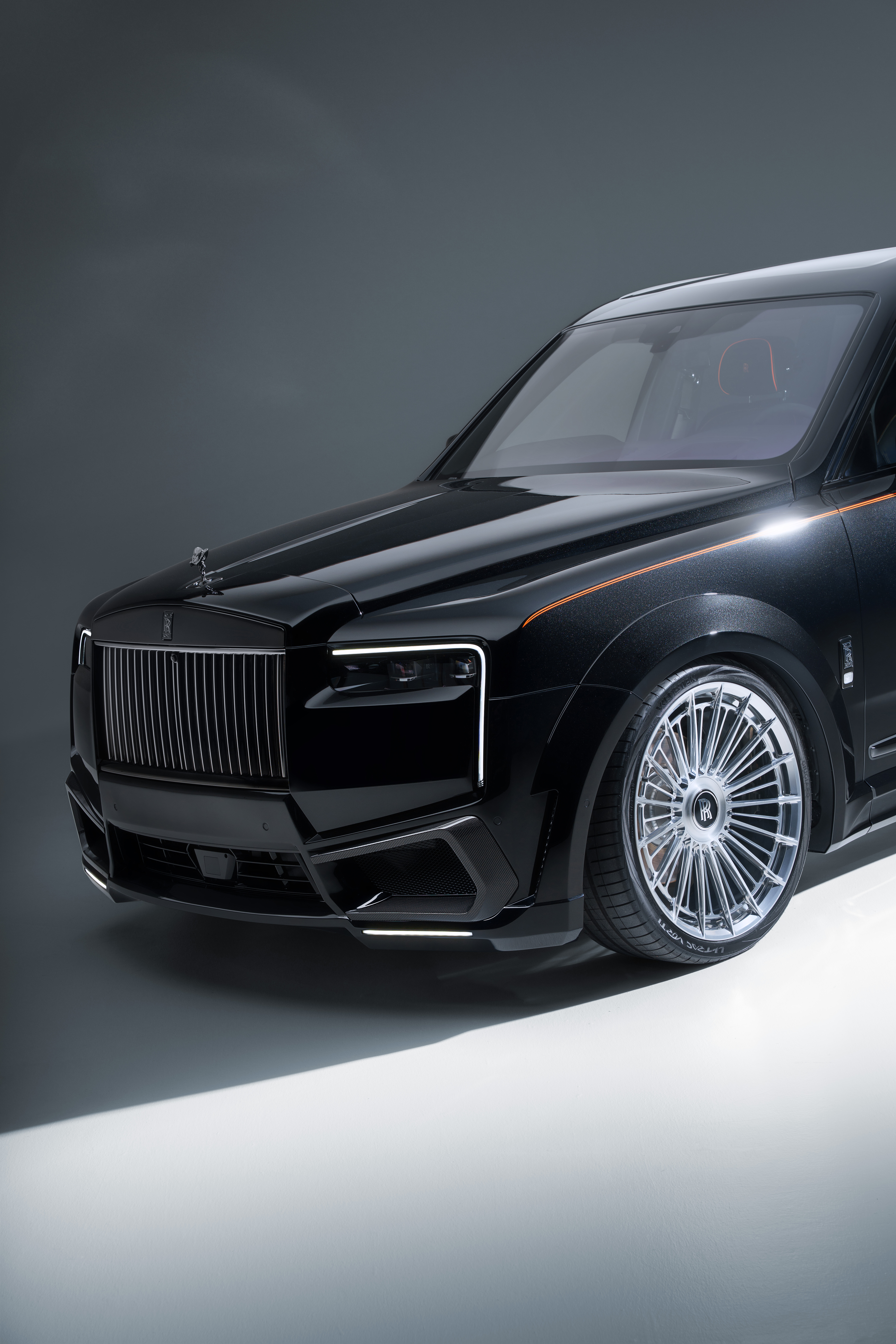 in English: New from SPOFEC: Exklusive Personalisierung für den Rolls-Royce Exclusive customization for the Rolls-Royce Cullinan Series II Thrilling OVERDOSE widebody version with visual carbon elements and 24-inch high-tech wheels Performance upgrade to 520 kW / 707 hp for the V12 |