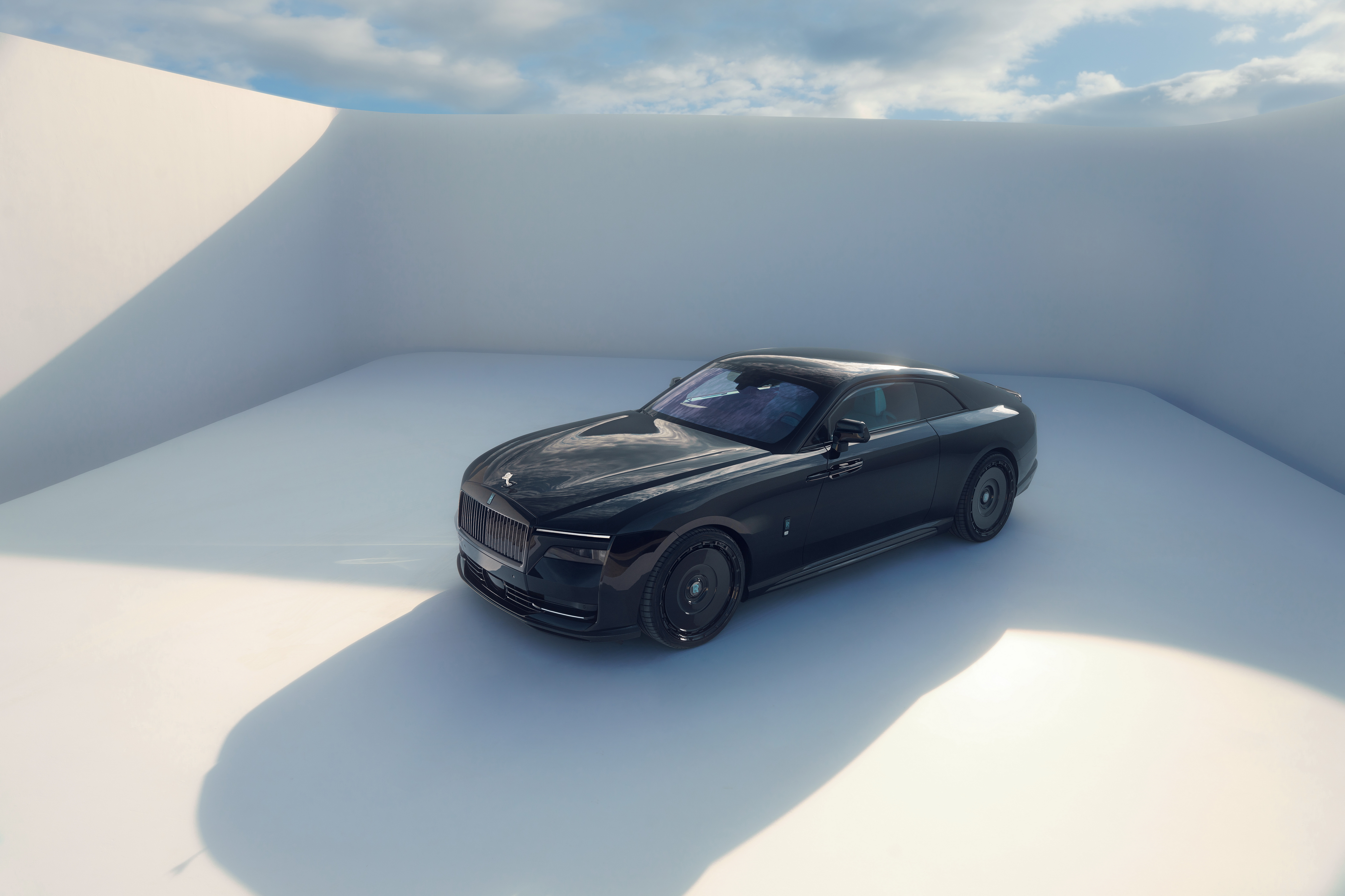 in English: High-end refinement for the worlds most exclusive electric coupe The SPOFEC range for the Rolls-Royce Spectre Sporty carbon aerodynamics and 24-inch high-tech wheels |