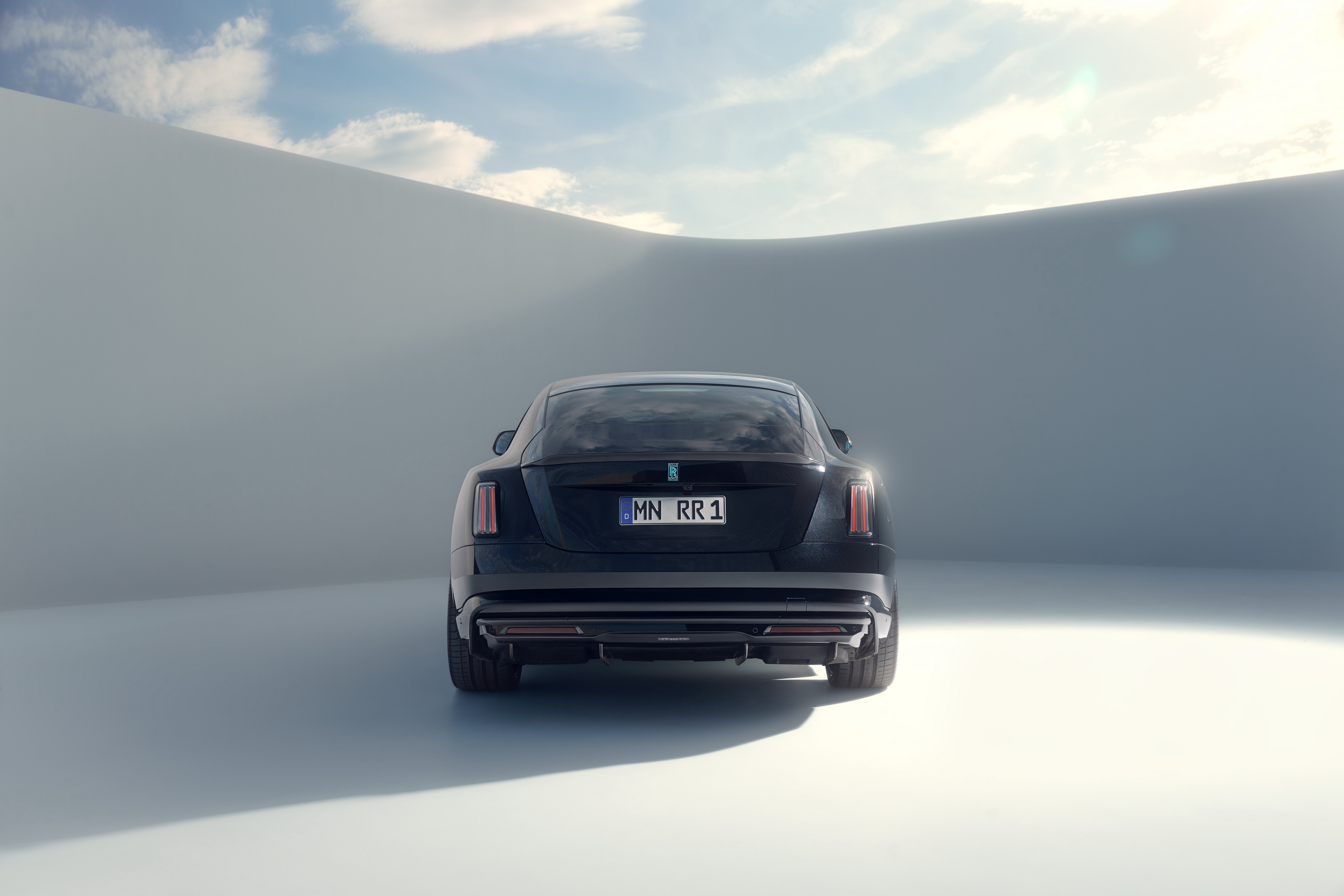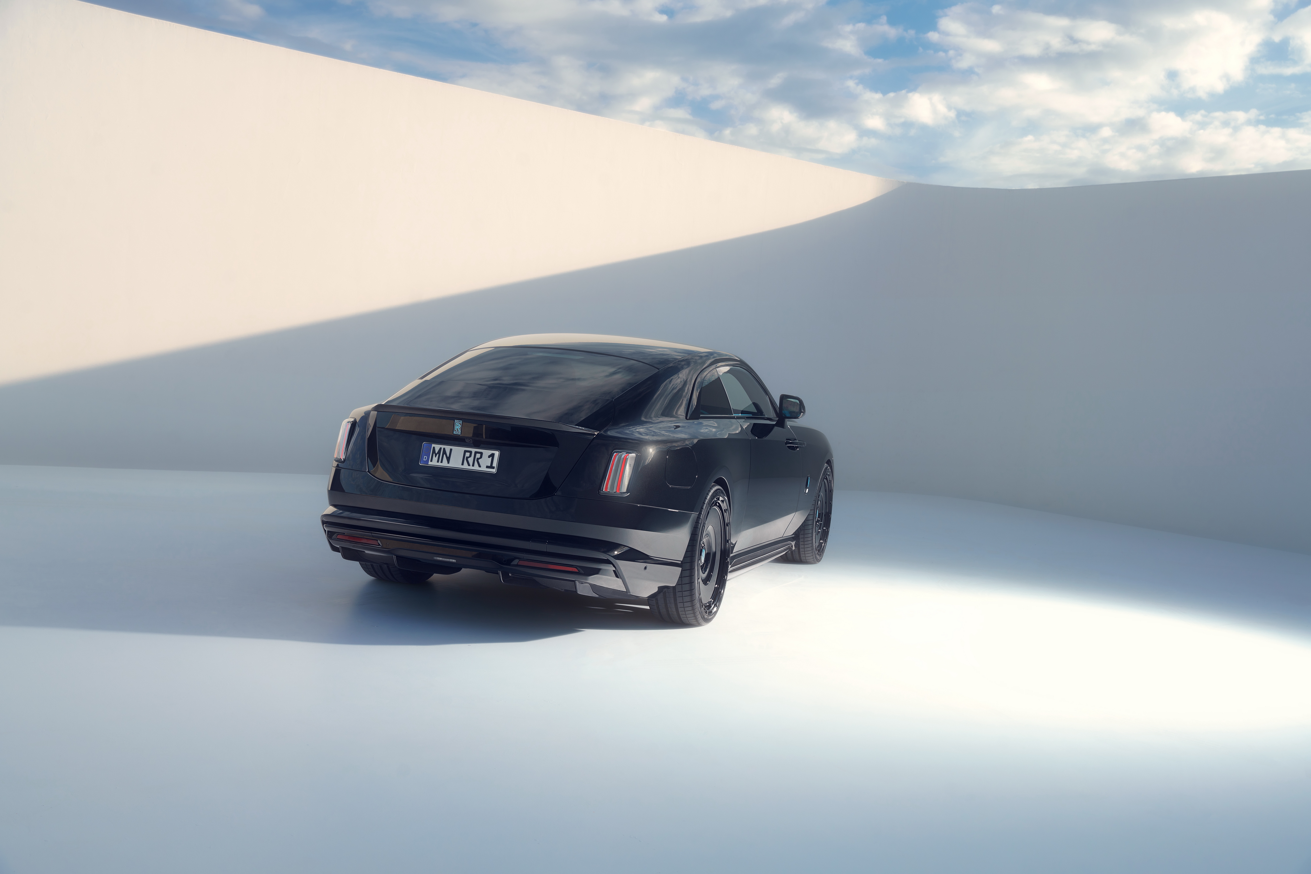 in English: SPOFEC adds even more thrills and dynamics to the Rolls-Royce Black Badge Ghost Series II Sporty-elegant bodywork design and slender multi-spoke wheels 22 inches in diameter 519 kW / 706 hp and 1,002 Nm torque for the V-12 Sports exhaust system with electronic sound management |