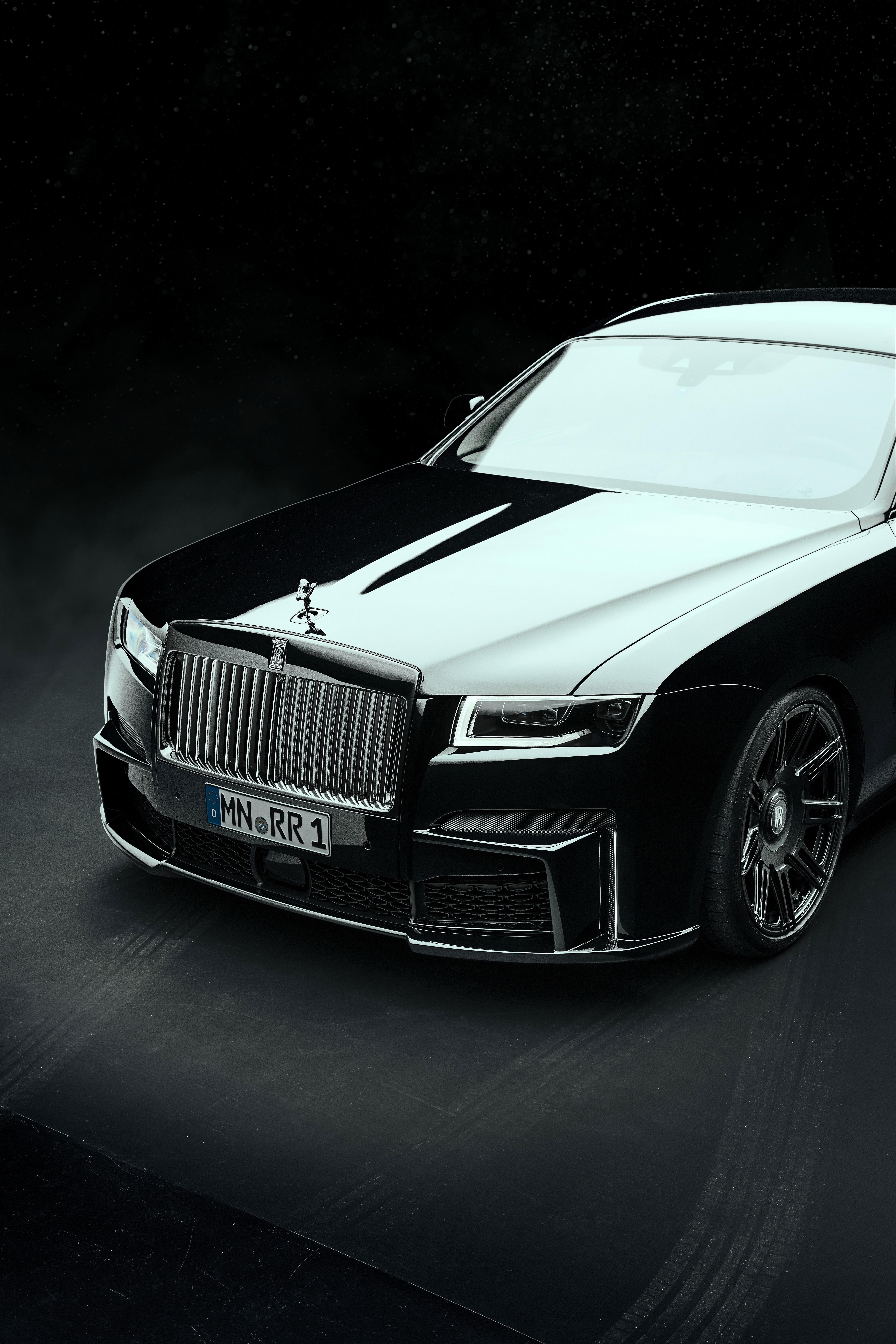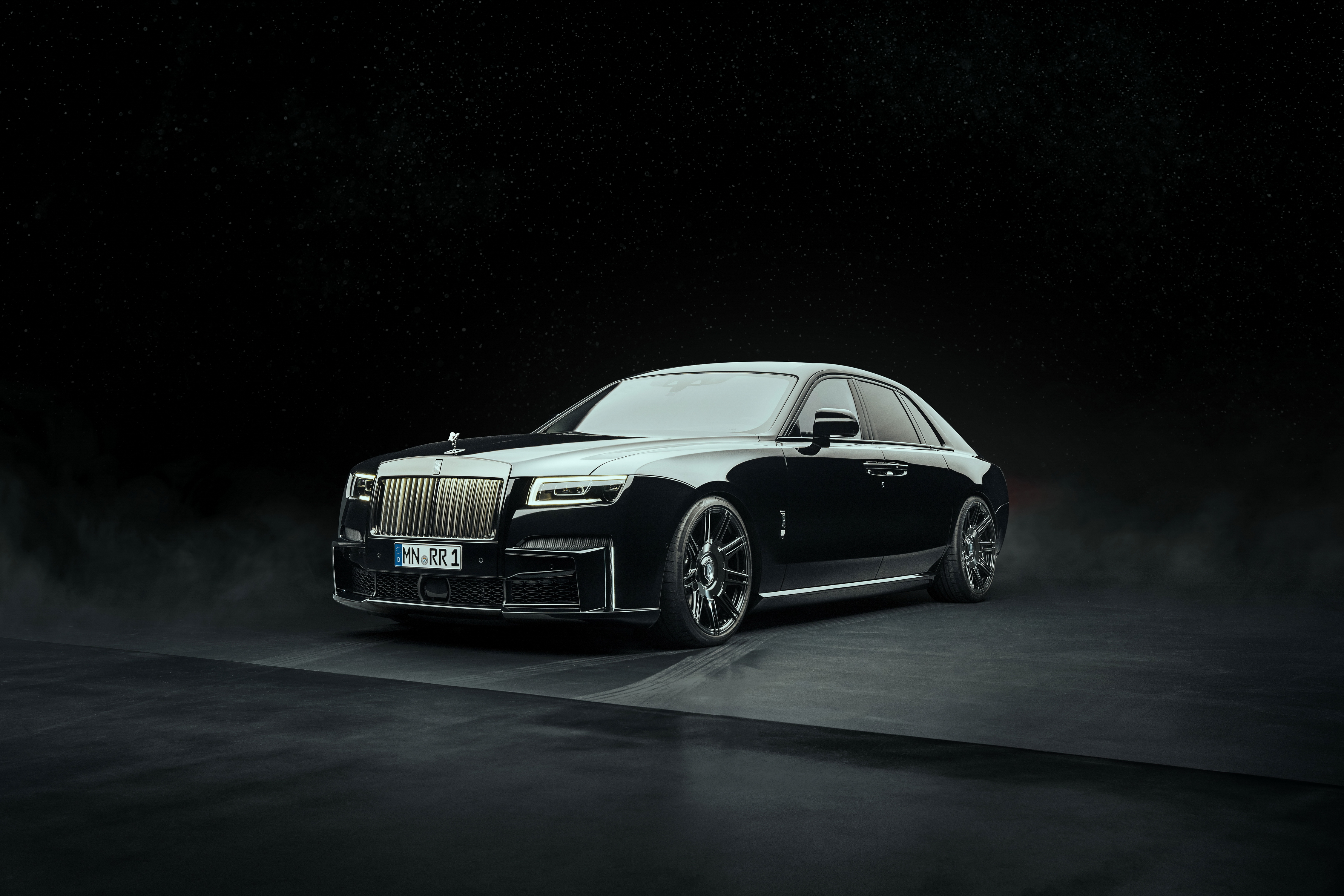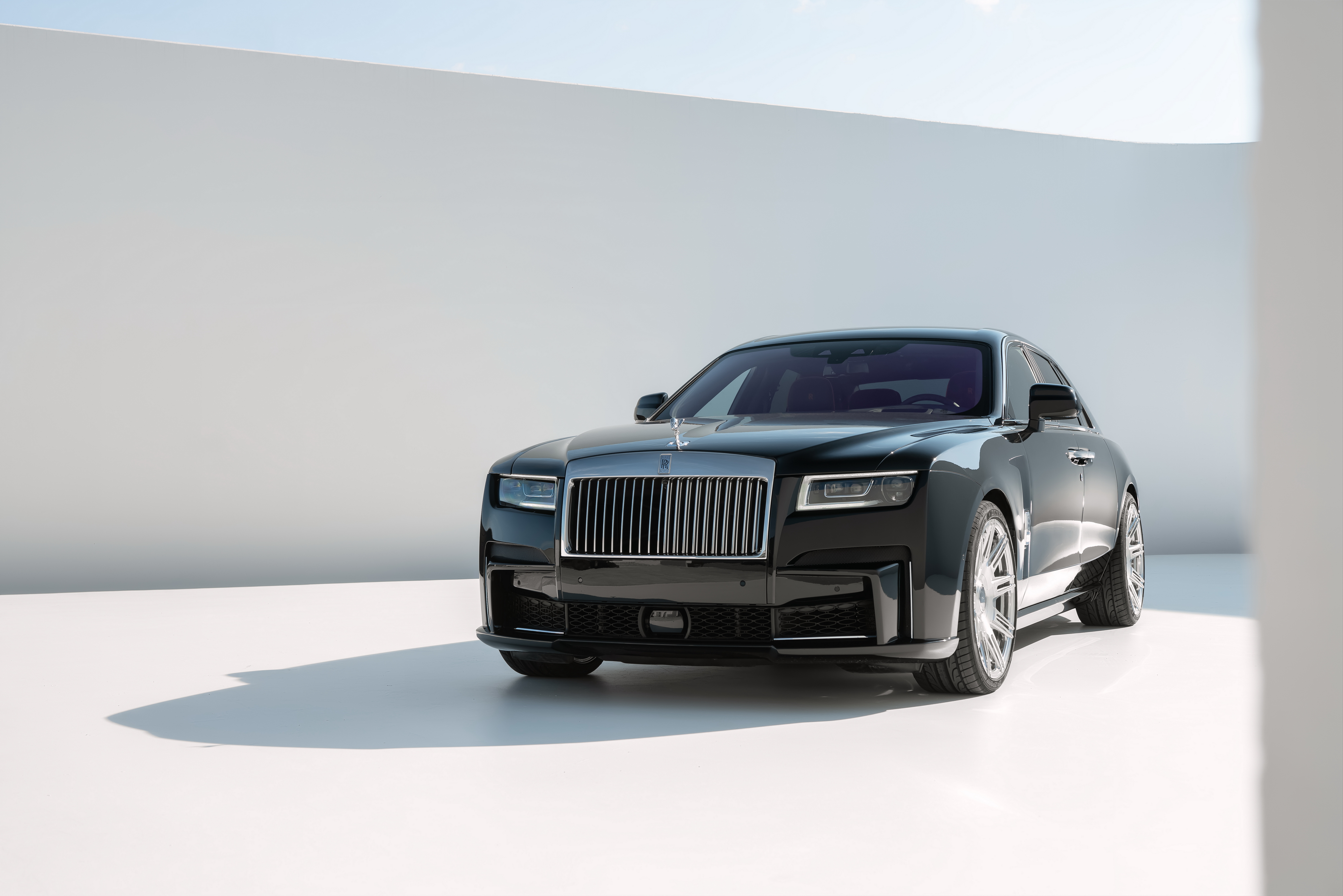 Deutsch: SPOFEC Performance und Design für den Rolls-Royce Black Badge Ghost 519 kW / 706 PS und 1 002 Nm Drehmoment für den V12 Sportauspuffanlage mit elektronischem Soundmanagement Carbon-Aerodynamik-Upgrade und 22 Zoll Schmiederäder |