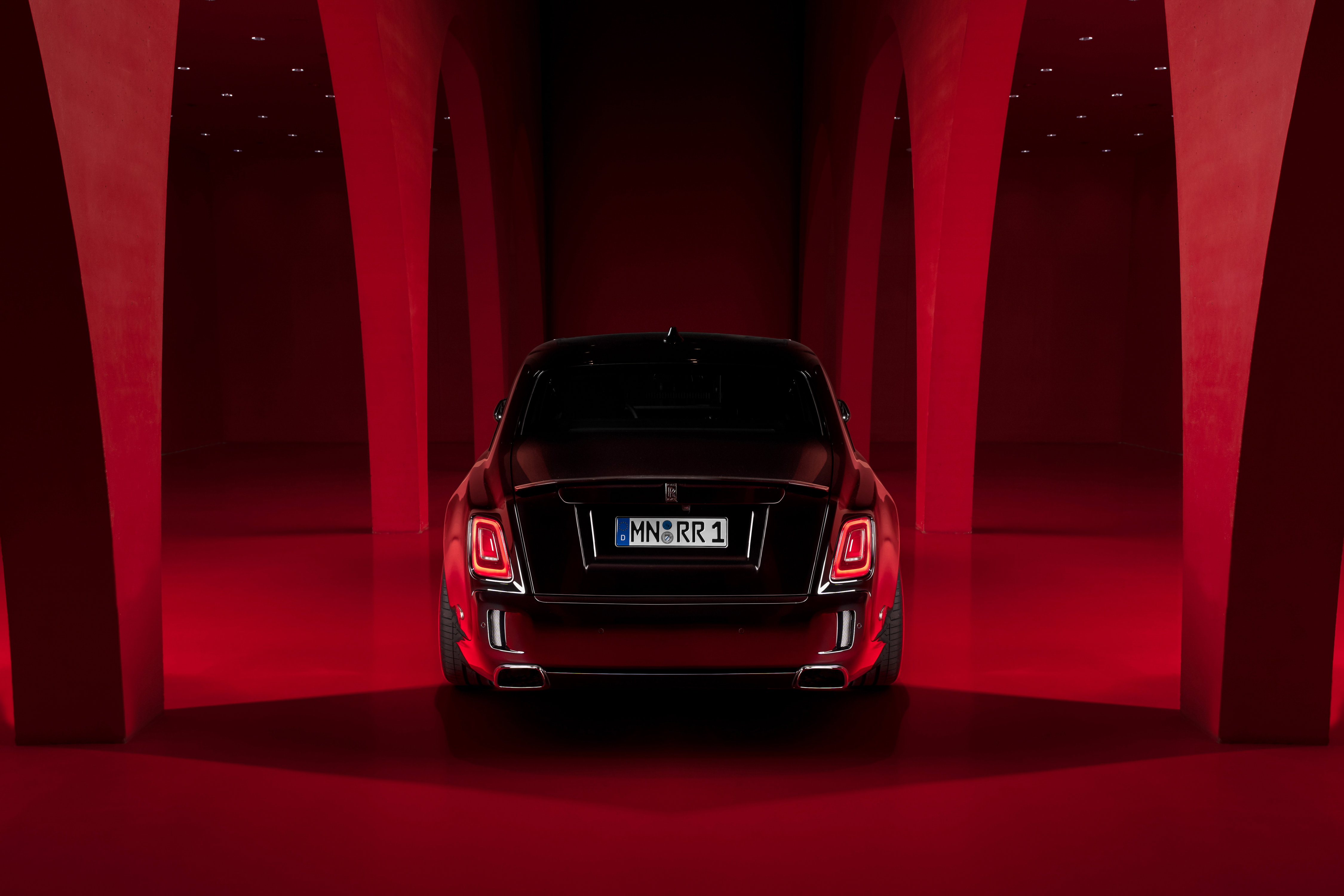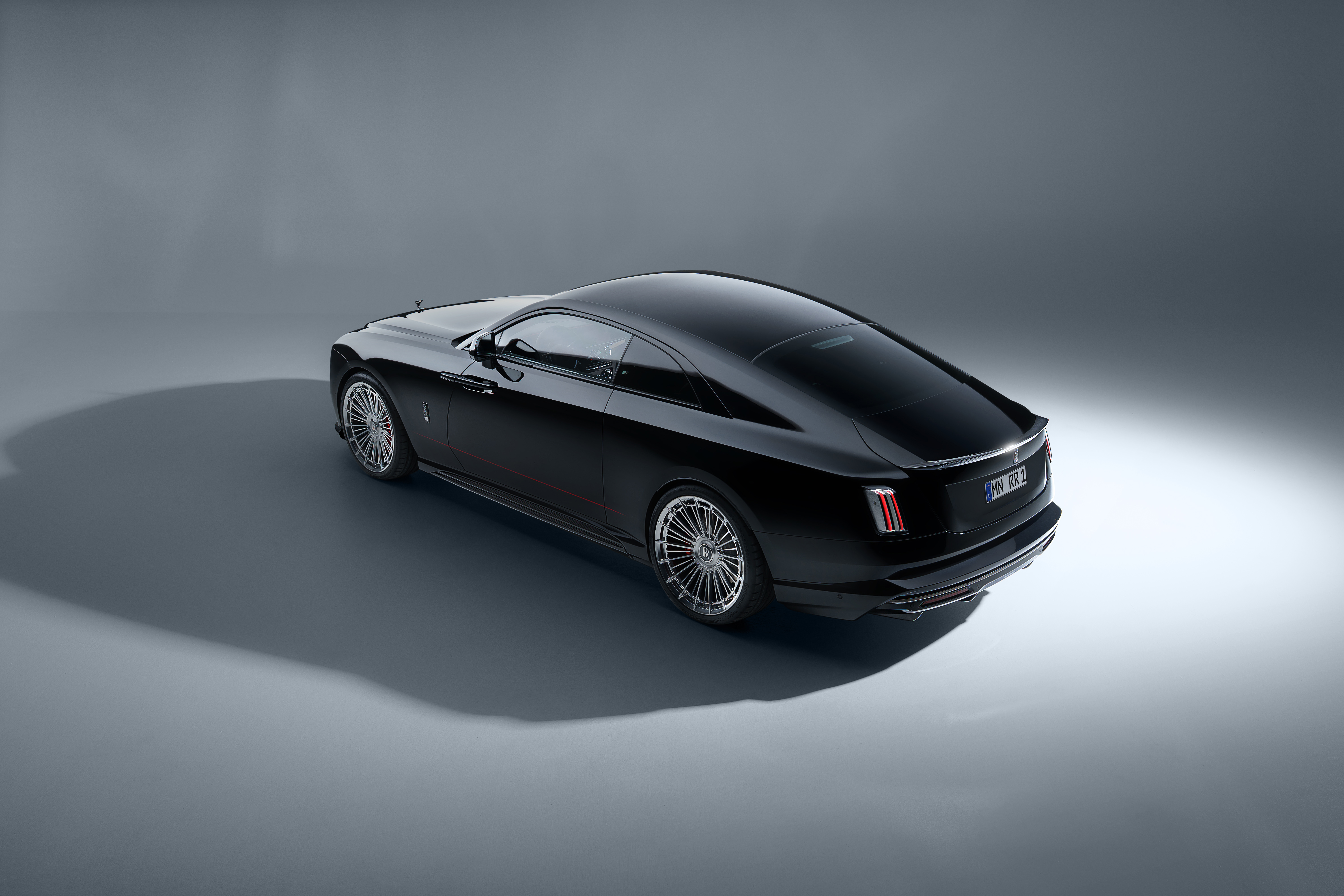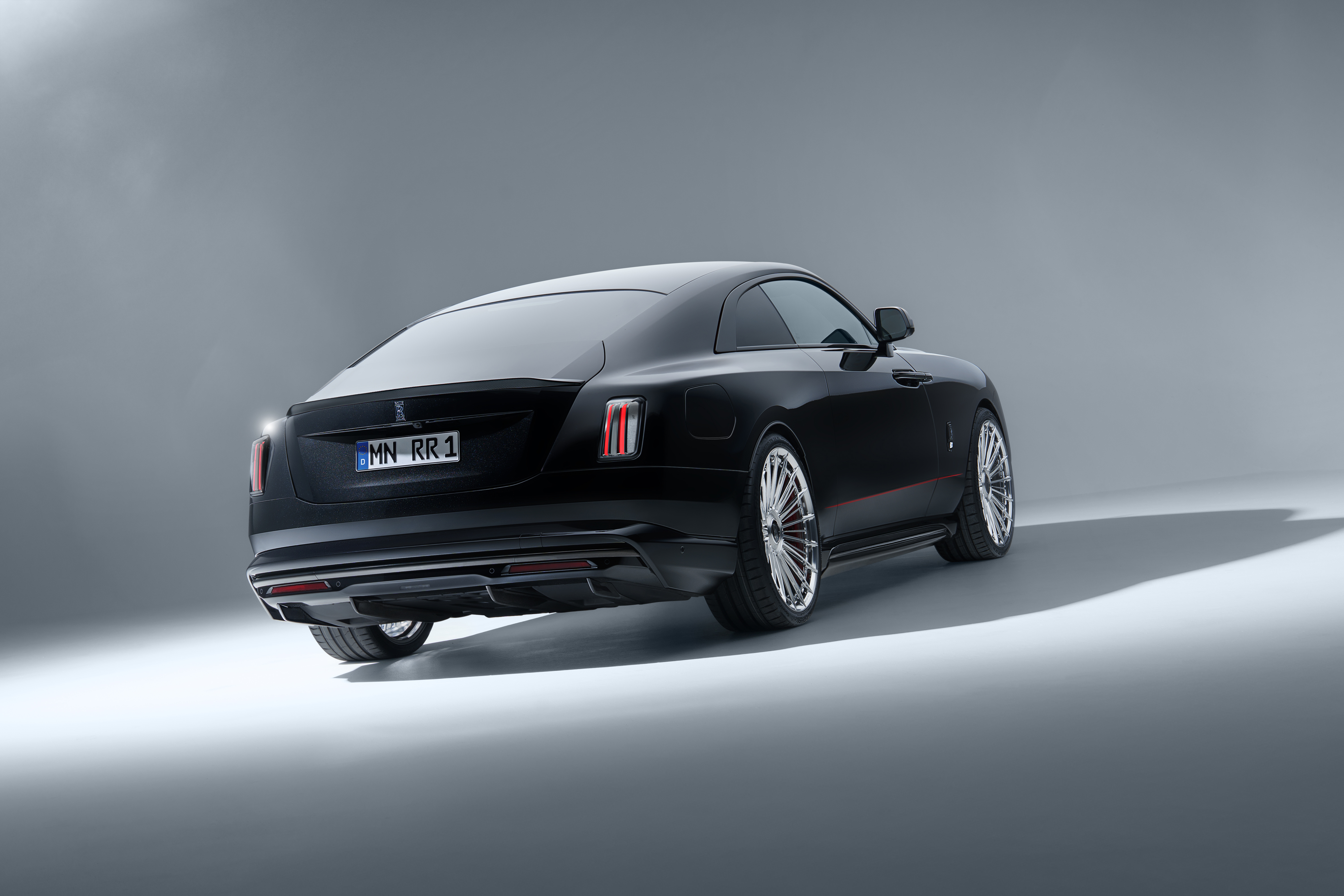 Deutsch: SPOFEC Performance und Design für den Rolls-Royce Black Badge Ghost 519 kW / 706 PS und 1 002 Nm Drehmoment für den V12 Sportauspuffanlage mit elektronischem Soundmanagement Carbon-Aerodynamik-Upgrade und 22 Zoll Schmiederäder |