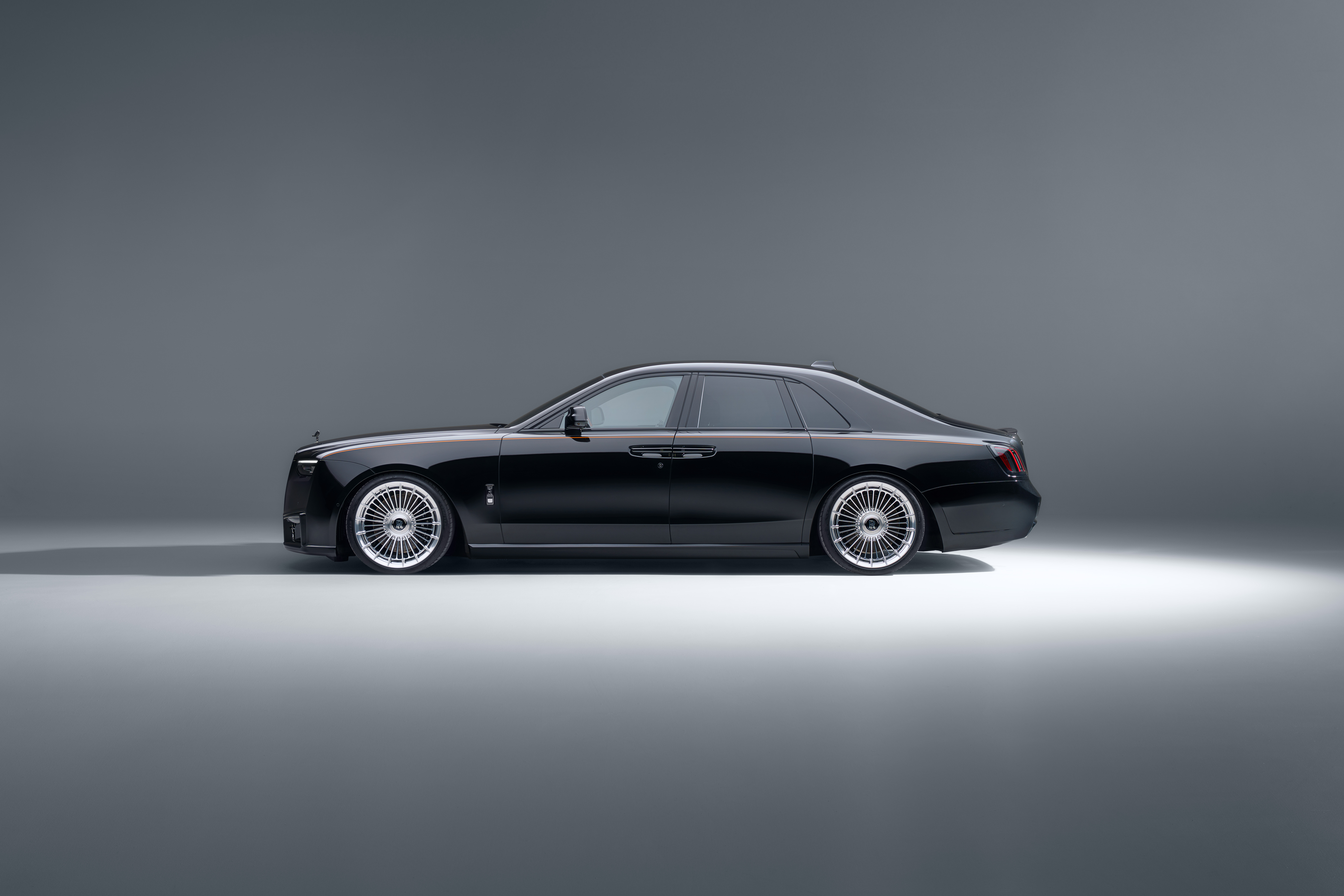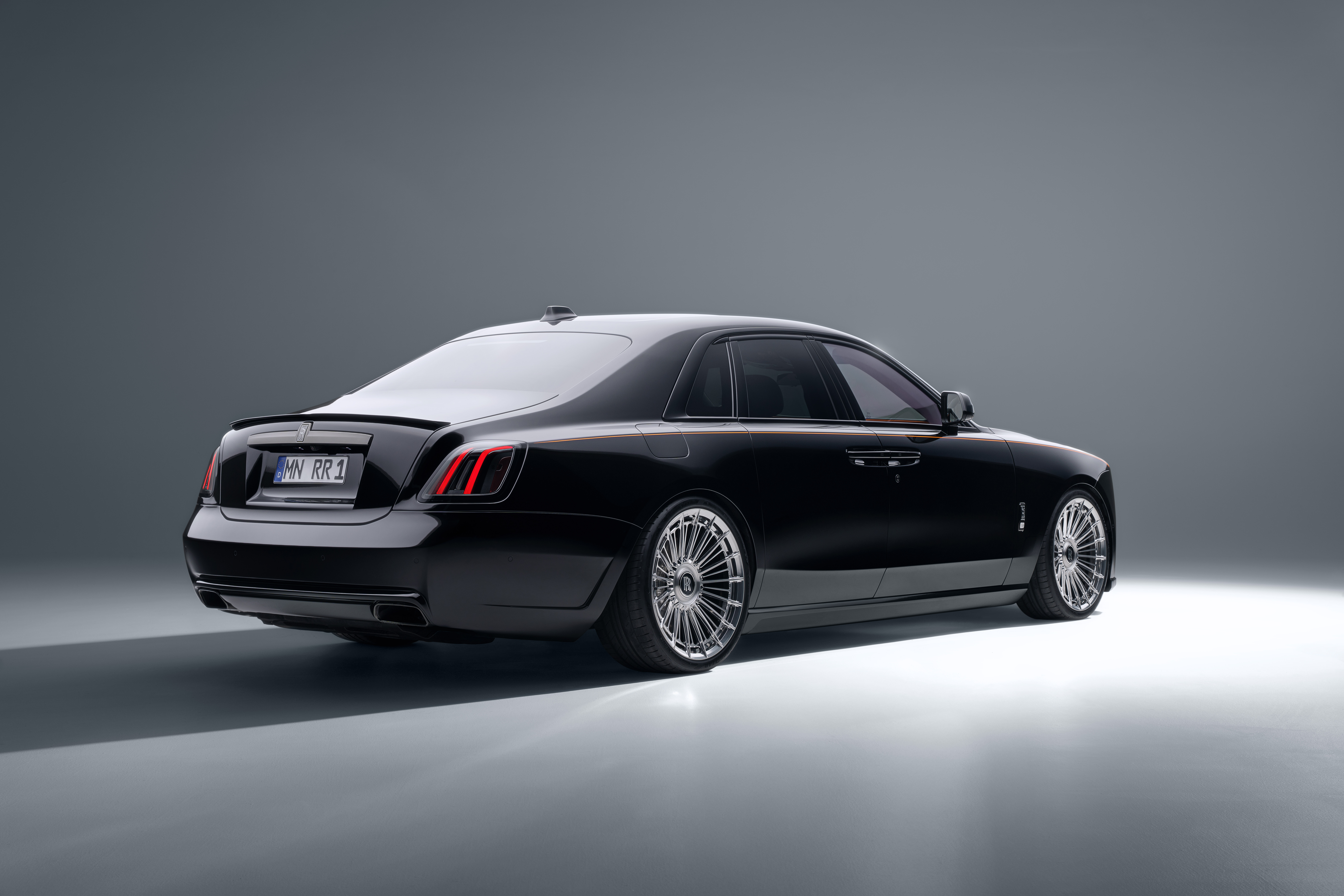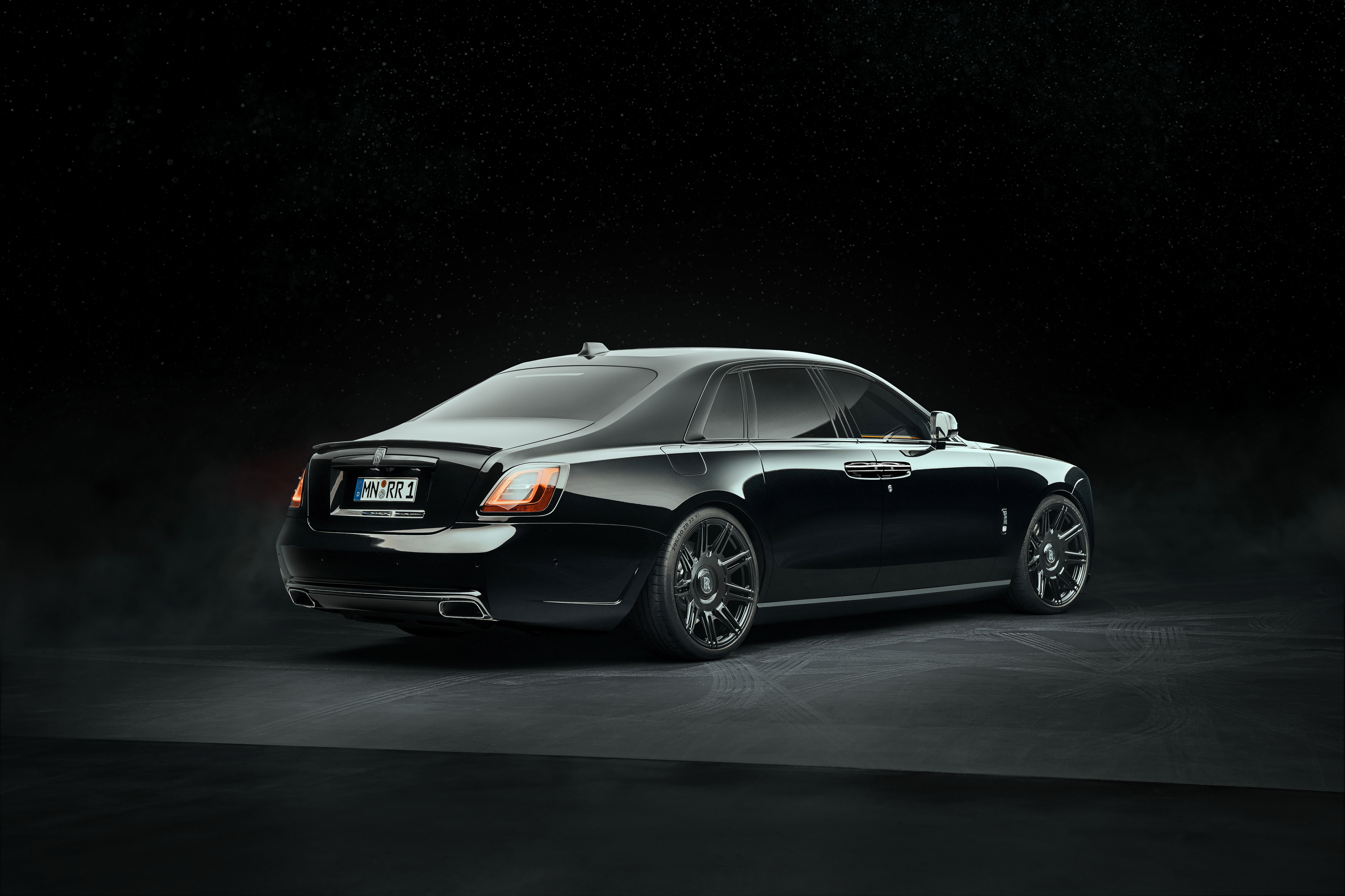 Deutsch: SPOFEC macht den Rolls-Royce Black Badge Ghost Series II noch aufregender und dynamischer Sportlich-elegantes Karosseriedesign und filigrane Vielspeichenräder mit 22 Zoll Durchmesser 519 kW / 706 PS und 1 002 Nm Drehmoment für den V12 Sportauspuffanlage mit elektronischem Soundmanagement |