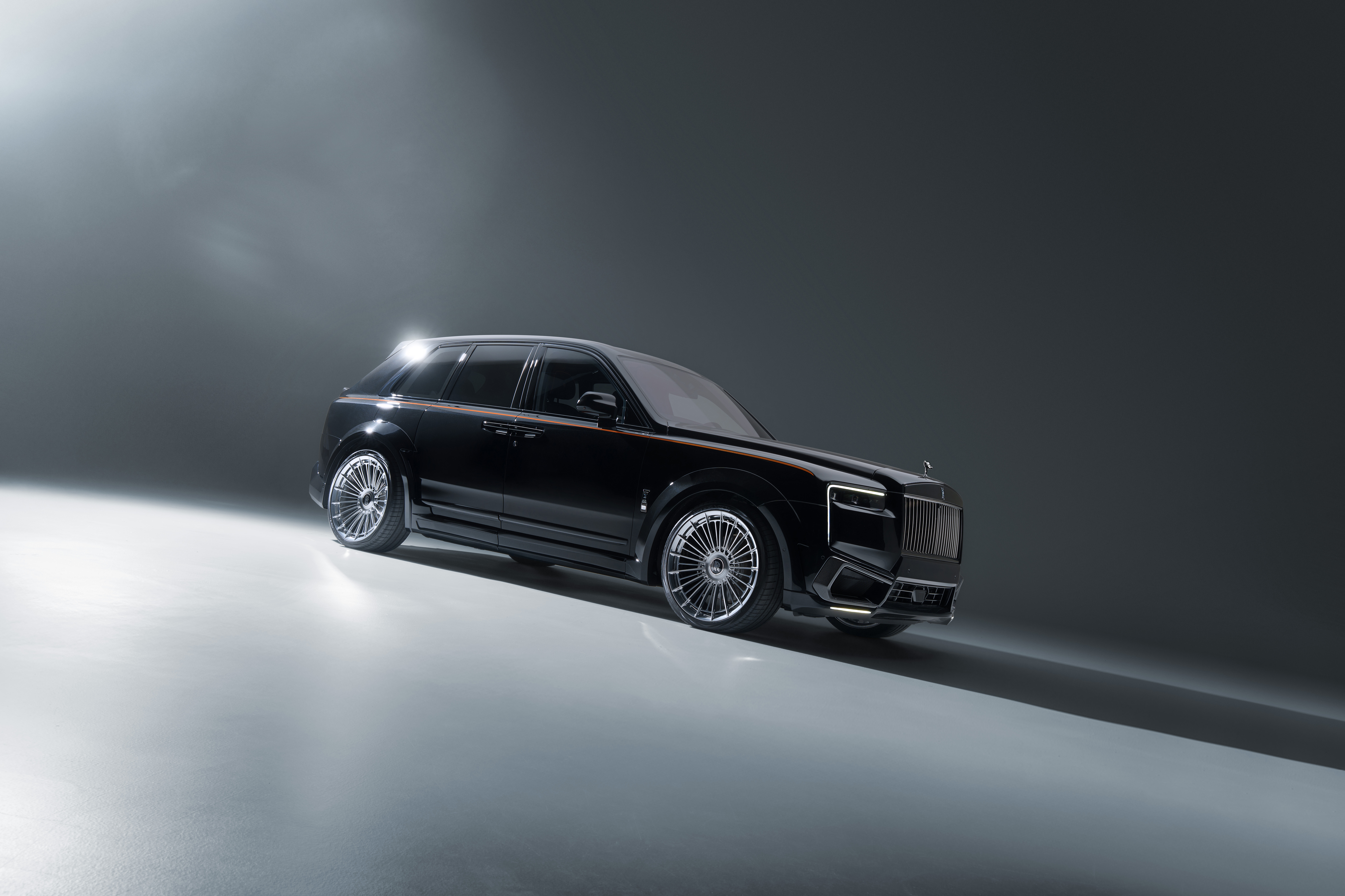 in English: New from SPOFEC: Exklusive Personalisierung für den Rolls-Royce Exclusive customization for the Rolls-Royce Cullinan Series II Thrilling OVERDOSE widebody version with visual carbon elements and 24-inch high-tech wheels Performance upgrade to 520 kW / 707 hp for the V12 |