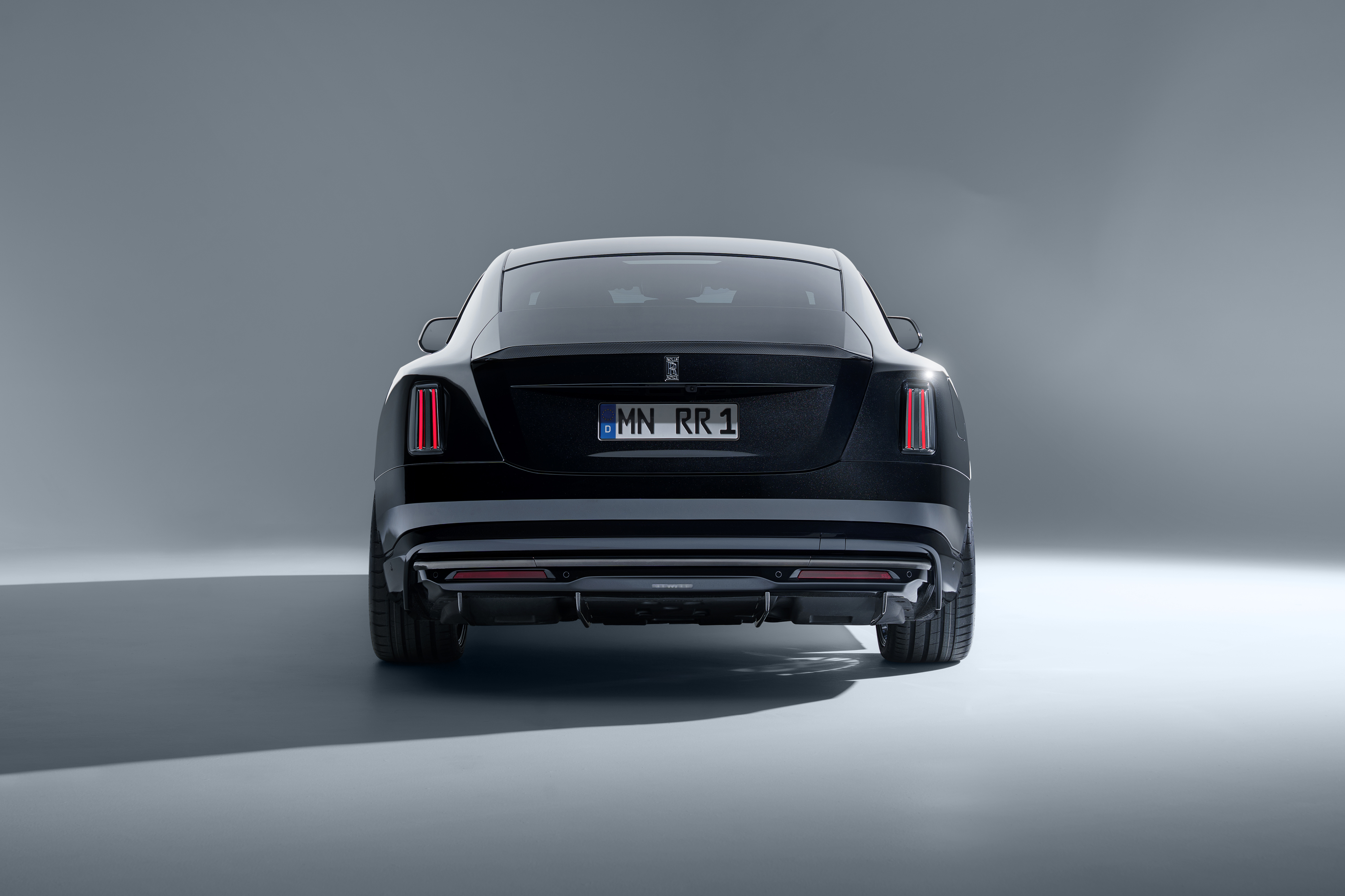in English: SPOFEC adds even more thrills and dynamics to the Rolls-Royce Black Badge Ghost Series II Sporty-elegant bodywork design and slender multi-spoke wheels 22 inches in diameter 519 kW / 706 hp and 1,002 Nm torque for the V-12 Sports exhaust system with electronic sound management |